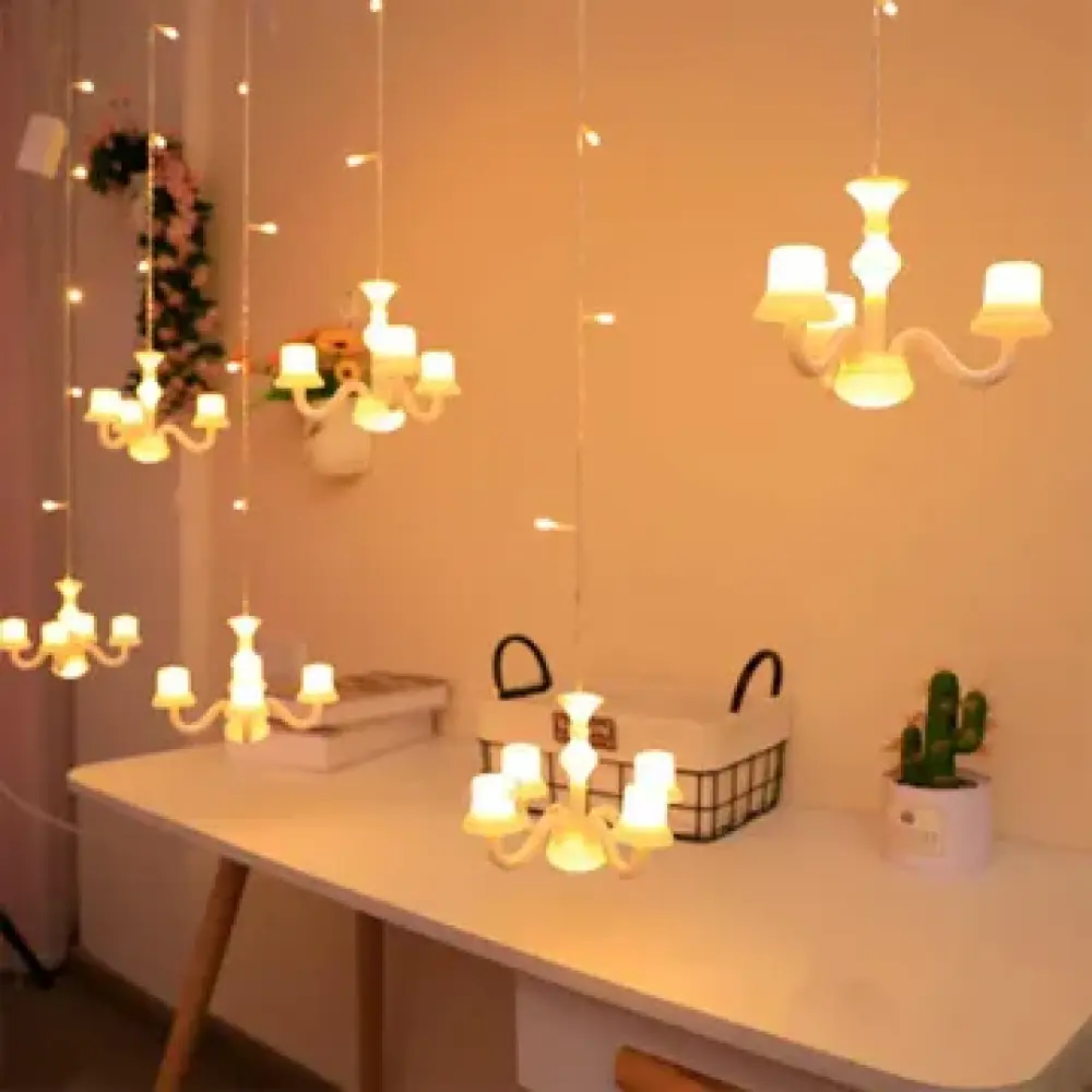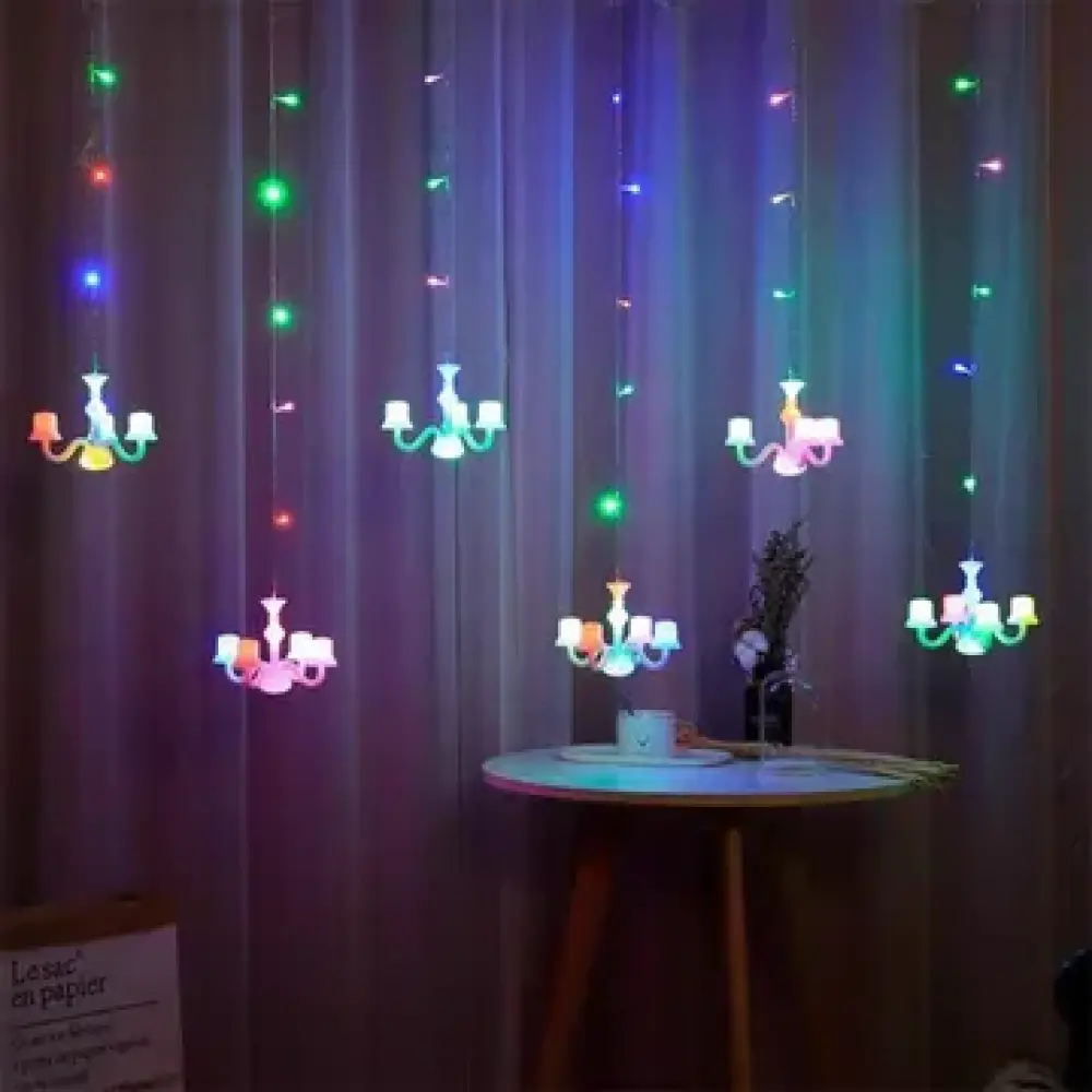 ثريا معلقة بإضاءات ملونة، تصميم يجمع بين الجمال والأناقة ليضيف لمسة فاخرة لمنزلك، تتميز بإضاءات متعددة تلائم جميع الأوقات، مما يجعلها الخيار المثالي لتزيين المساحات بأجواء رائعة.