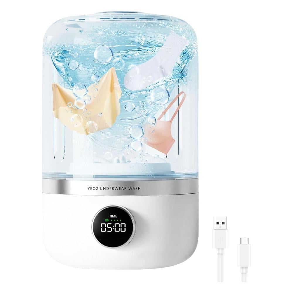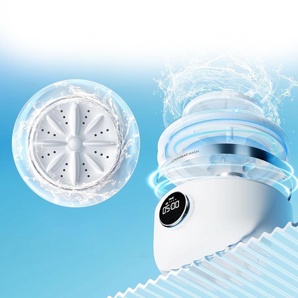 غسالة محمولة صغيرة الحجم وعملية مثالية لغسل الجوارب والملابس الداخلية بسهولة وسرعة في أي مكان. تصميمها المدمج يجعلها سهلة الحمل والاستخدام سواء في السفر أو المنزل، مع أداء قوي يناسب الملابس الحساسة.