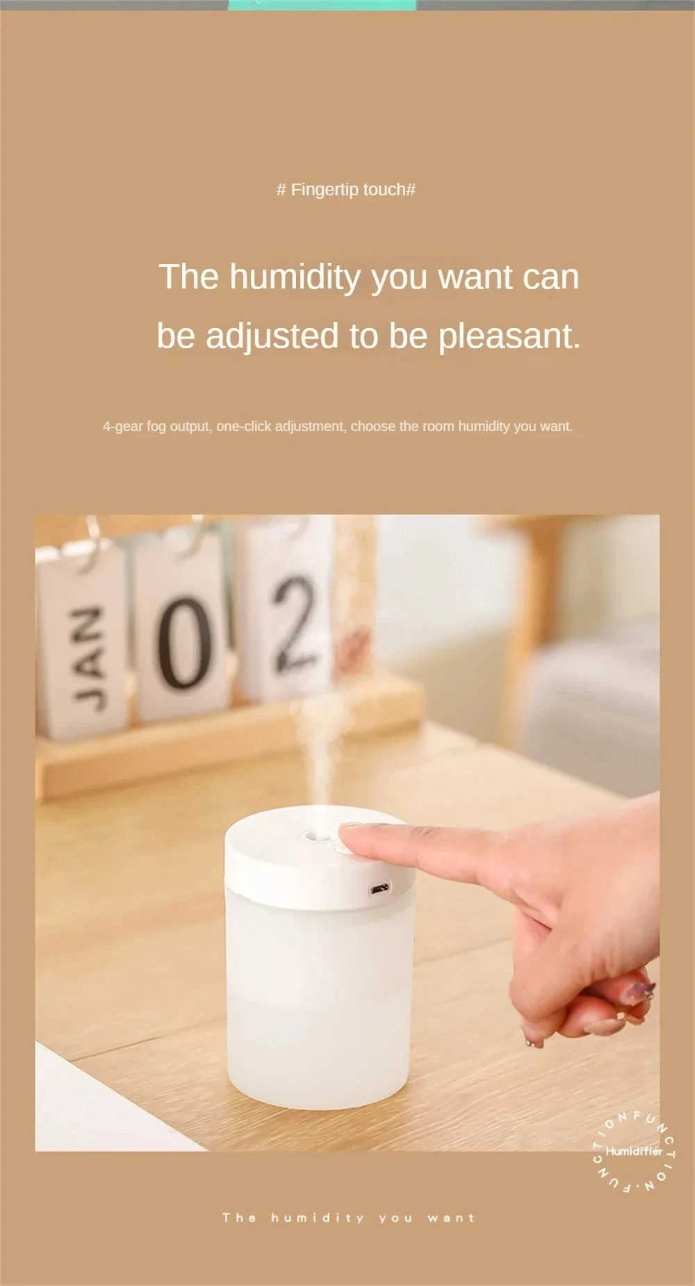 2.【تعديل بمفتاح واحد】: إخراج الضباب بـ 4 سرعات، تعديل بمفتاح واحد، اختر رطوبة الغرفة التي تريدها